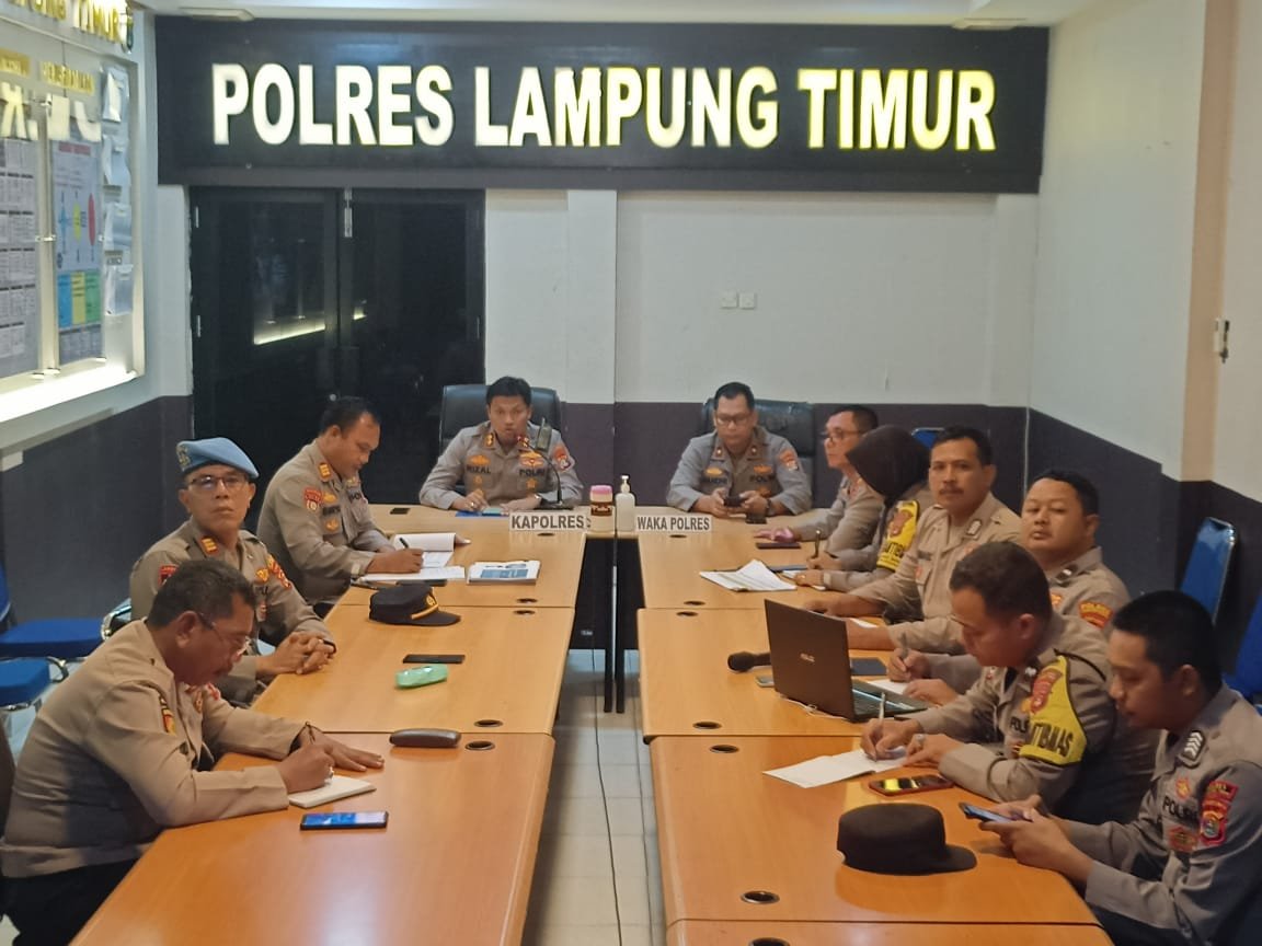 Kegiatan yang dilaksanakan di aula vicon Polres Lampung Timur tersebut, dihadiri oleh Wakapolres, pejabat utama Polres Lampung Timur, Bhabinkamtibmas, Kepala Desa dan Babinsa se-Kabupaten Lampung Timur.