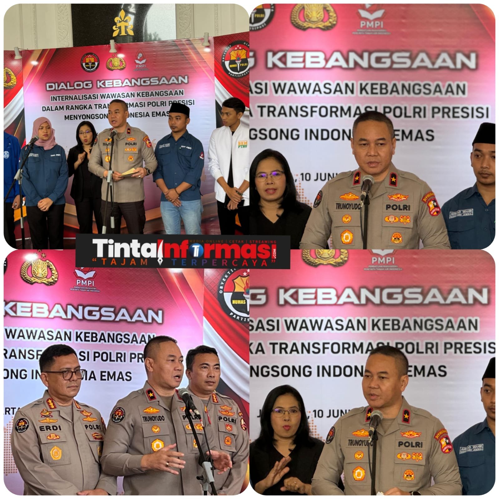 Tintainformasi.com, Jakarta — Divisi Humas Polri bersama Persatuan Mahasiswa Pecinta Tanah Air Indonesia (PMPI) menggelar dialog kebangsaan ‘Internalisasi Wawasan Dalam Rangka Transformasi Polri Presisi Menyongsong Indonesia Emas 2045’ ini di The Tribrata Dharmawangsa, Jakarta, Senin (10/6/2024).
