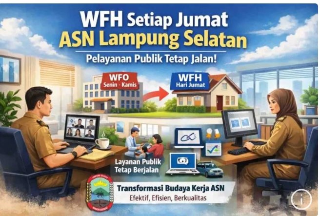 Pemerintah Kabupaten (Pemkab) Lampung Selatan (Lamsel) telah menerapkan transformasi budaya kerja aparatur sipil negara (ASN) dengan skema kerja fleksibel, yakni kombinasi WFH dan Work From Office (WFO).